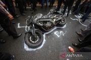 Polisi memberikan tanda posisi kendaraan motor yang digunakan mahasiswa UI Mohammad Hasya saat rekonstruksi kecelakaan di Jalan Srengseng Sawah, Jagakarsa, Jakarta Selatan, Kamis (2/2/2023). Polda Metro Jaya menggelar rekonstruksi kecelakaan yang menewaskan mahasiswa UI Mohammad Hasya yang dijadikan tersangka dan melibatkan terduga penabrak purnawirawan Polri AKBP Eko Setio Budi dengan menghadirkan sembilan saksi serta melibatkan para pakar hingga kolaborasi interprofesi. ANTARA FOTO/Asprilla Dwi Adha/nym.