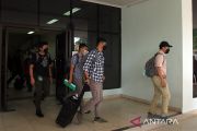 Sejumlah penyidik KPK berjalan membawa koper usai menggeledah Kantor Dinas Pekerjaan Umum (PU) Provinsi Papua di Jayapura, Papua, Selasa (7/2/2023). Penggeledahan itu untuk mencari bukti tambahan terkait kasus dugaan korupsi yang menjerat Gubernur Papua nonaktif Lukas Enembe. ANTARA FOTO/Gusti Tanati/nym.