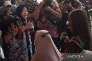 Menteri Sosial Tri Rismaharini (kiri) berbincang dengan warga Pemerlu Pelayanan Kesejahteraan Sosial (PPKS) saat peresmian rumah susun sentra terpadu Pangudi Luhur, Bekasi, Jawa Barat, Jumat (10/2/2023). Rumah susun untuk PPKS itu terdiri dari 93 unit yang dapat menampung 360 orang dengan biaya Rp10.000 per bulan. ANTARA FOTO/ Fakhri Hermansyah/nym.