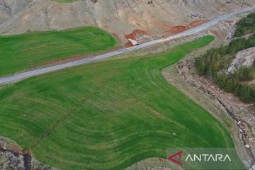 Foto udara menunjukkan retakan pascagempa di Desa Tevekkeli, Kahramanmaras, Turki, Jumat (10/2/2023). ANTARA FOTO/REUTERS/Issam Abdallah/rwa.