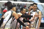 Sejumlah pebola voli Surabaya BIN Samator melakukan selebrasi usai mengalahkan tim Kudus Sukun Badak di set ketiga dalam pertandingan PLN Mobile Proliga 2023 Putaran Kedua Pekan Kedua di GOR Ken Arok, Malang, Jawa Timur, Minggu (12/2/2023). Surabaya BIN Samator menang atas Kudus Sukun Badak dengan skor 3-0 (25-23, 25-22, 25-21). ANTARA FOTO/Ari Bowo Sucipto/foc.