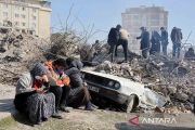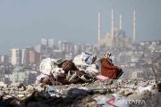 Seorang perempuan duduk di atas reruntuhan rumahnya yang terdampak gempa bumi mematikan di Kahramanmaras, Turki, Selasa (14/2/2023). Data terbaru dari otoritas Turki dan Suriah menyebutnya sedikitnya 36.217 orang tewas akibat gempa tersebut. ANTARA FOTO/REUTERS/Nir Elias/rwa.