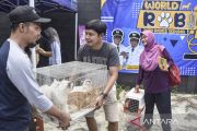 Petugas menimbang berat badan kucing dalam rangkaian hari rabies sedunia di Lingkungan Lebsi, Kabupaten Ciamis, Jawa Barat, Rabu (22/2/2023). Dinas Peternakan dan Perikanan (Disnakan) Kabupaten Ciamis menggelar vaksinasi rabies gratis bagi hewan peliharaan dalam rangka mewujudkan program pemerintah menuju Indonesia bebas rabies 2030. ANTARA FOTO/Adeng Bustomi/nym.