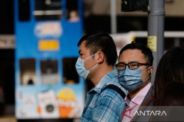 Orang-orang memakai masker di jalan, sehari sebelum pemerintah setempat mencabut aturan wajib menggunakan masker di Hong Kong, China (28/2/2023). ANTARA FOTO/REUTERS/Tyrone Siu/tom.