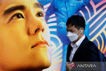 Seorang pria memakai masker di jalan, sehari sebelum pemerintah setempat mencabut aturan wajib menggunakan masker di Hong Kong, China (28/2/2023). ANTARA FOTO/REUTERS/Tyrone Siu/tom.