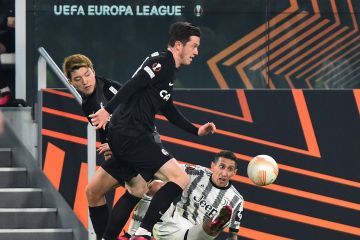 Pesepak bola SC Freiburg Ritsu Doan (tengah) berebut bola dengan pesepak boala Juventus Danilo (kanan) dalam laga leg pertama babak 16 besar Liga Europa, di Stadion Allianz Turin, Italia, Kamis (9/3/2023). Juventus berhasil mengalahkan Freiburg 1-0. ANTARA FOTO/Reuters-Massimo Pinca/hp.