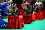 Pemilik anjing mempersiapkan anjing nya jenis Yorkshire Terrier untuk berkompetisi pada hari keempat di pameran anjing Crufts, di Birmingham, Inggris, Minggu (12/3/2023). ANTARA FOTO/Reuters-Molly Darlington/hp.