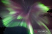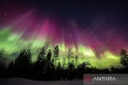 Aurora, yang disebabkan oleh lontaran massa koronal pada Matahari, menerangi langit di atas Lapland di Rovaniemi, Finlandia (15/3/2023). ANTARA FOTO/Courtesy of All About Lapland/Alexander Kuznetsov/Handout via REUTERS/aww.
