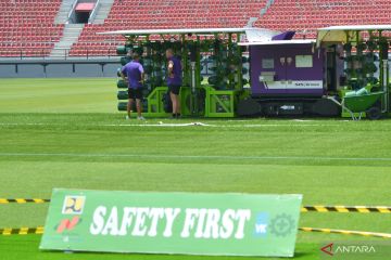 Petugas mengoperasikan mesin âpitch stitchingâ atau jahit rumput di lapangan Stadion Kapten I Wayan Dipta, Gianyar, Bali, Senin (27/3/2023). Mesin jahit rumput rekomendasi FIFA itu didatangkan ke Indonesia untuk meningkatkan kualitas standar lapangan di enam stadion yang akan menjadi lokasi penyelenggaraan Piala Dunia U-20 pada Mei 2023. ANTARA FOTO/Fikri Yusuf/hp.