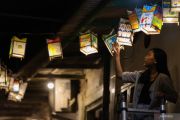 Pengunjung mengamati damar kurung saat Damar Kurung Festive 2023 di Gresik, Jawa Timur, Sabtu (1/4/2023) malam. Acara yang diselenggarakan khusus pada bulan Ramadhan tersebut memajang 240 damar kurung karya sejumlah pelajar sekolah dasar di Gresik dan berlangsung sampai 9 April 2023. ANTARA FOTO/Rizal Hanafi/foc.