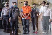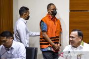Mantan pejabat Ditjen Pajak Kementerian Keuangan Rafael Alun Trisambodo (tengah) berjalan dengan mengenakan rompi tahanan usai menjalani pemeriksaan di Gedung Merah Putih KPK, Jakarta, Senin (3/4/2023). KPK menahan Rafael Alun Trisambodo terkait kasus gratifikasi selama bekerja di Kementerian Keuangan. ANTARA FOTO/M Risyal Hidayat/aww.