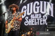 Vokalis sekaligus gitaris kelompok musik Gugun Blues Shelter, Gugun tampil dalam Ramadhan Jazz Festival 2023 di pelataran Masjid Cut Meutia, Jakarta, Sabtu (8/4/2023). Festival musik yang yang digelar pada 7-8 April 2023 tersebut diisi oleh sejumlah penyanyi dan grup band di antaranya Lalahuta, Gugun Blues Shelter, Deredia, Mahalini dan Rizky Febian. ANTARA FOTO/Fauzan/nym.