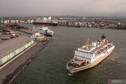 Foto udara Kapal Motor (KM) Lawit asal Pontianak, Kalimantan barat yang mengangkut 1.002 pemudik saat akan bersandar di dermaga penumpang Pelabuhan Tanjung Emas, Semarang, Jawa Tengah, Selasa (11/4/2023). PT Pelayaran Nasional Indonesia (Persero) secara nasional memprediksi penumpang kapal yang menggunakan kapal PT PELNI pada periode masa angkutan Lebaran 2023 akan mencapai 604.183 orang, atau melonjak sekitar 25 persen dibandingkan jumlah realisasi penumpang pada periode yang sama pada tahun 2022. ANTARA FOTO/Aji Styawan/hp.