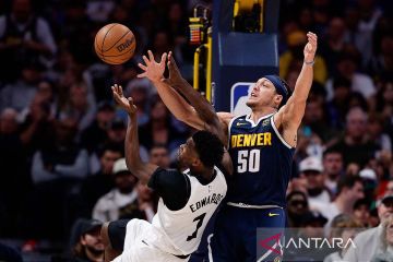 Pebasket Minnesota Timberwolves Anthony Edwards (1) berebut bola dengan pebasket Denver Nuggets Aaron Gordon (50) dalam pertandingan Playoffs NBA di Ball Arena, Denver, Colorado, Amerika Serikat, Kamis (20/4/2023). Denver Nuggets berhasil mengalahkan Minnesota Timberwolves 122-113. ANTARA FOTO/USA TODAY Sports via Reuters/Isaiah J. Downing/nym.