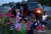 Pemudik asal Tangerang menyantap hidangan bekal berbuka puasa di badan jalan di depan rest area KM 429A Ungaran yang padat, Tol Semarang-Solo, Kabupaten Semarang, Jawa Tengah, Kamis (20/4/2023). Sejumlah pemudik mengaku membawa perbekalan buka puasa sebagai upaya menghemat biaya perjalanan mudik serta untuk menghindari antrean pesanan tempat makan di rest area. ANTARA FOTO/Aji Styawan/rwa.