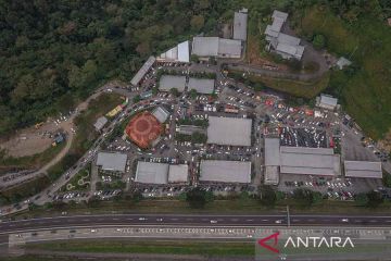 Foto udara suasana pemudik kendaraan roda empat yang ingin beristirahat dan mencari tempat makan untuk berbuka puasa di rest area KM 429A Ungaran, Tol Semarang-Solo, Kabupaten Semarang, Jawa Tengah, Kamis (20/4/2023). Sejumlah pemudik mengaku membawa perbekalan buka puasa sebagai upaya menghemat biaya perjalanan mudik serta untuk menghindari antrean pesanan tempat makan di rest area. ANTARA FOTO/Aji Styawan/rwa.