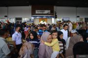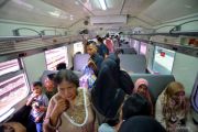 Sejumlah calon penumpang bersiap menaiki kereta api ekonomi Sibinuang jurusan Pariaman di Stasiun Kereta Api Simpang Haru Padang, Sumatera Barat, Minggu (23/4/2023). PT KAI Divre II Sumbar menambahkan dua kereta api ekonomi jurusan Pariaman untuk mengantisipasi lonjakan penumpang selama libur Lebaran yang pada hari kedua Idul Fitri ini sudah mencapai 40 persen dibandingkan hari biasa. ANTARA FOTO/Iggoy el Fitra/hp.