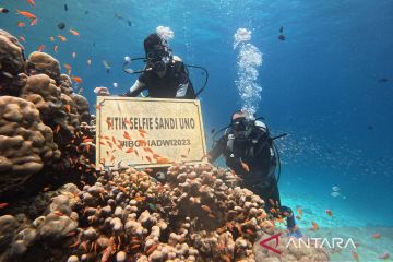 Penyelam menyusuri titik selam wisata Iboih, Sabang, Aceh, Senin (1/5/2023). Dinas Pariwisata Aceh bersama Pemerintah Kota Sabang terus mempromosikan wisata bawah laut atau bahari di daerahnya yang menjadi sektor andalan untuk menggaet wisatawan domestik maupun mancanegara. ANTARA FOTO/Khalis Surry/Lmo/pras