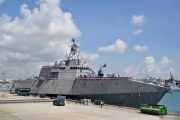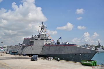 USS Mobile berlabuh di Pangkalan Angkatan Laut Changi di pameran kapal perang saat berlaangsung IMDEX Asia 2023, sebuah pameran pertahanan maritim, di Singapura, Kamis (4/5/2023). ANTARA FOTO/Reuters-Caroline Chia/hp.