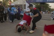 Atlet jalan cepat putra Indonesia Hendro Yap melakukan sujud syukur usai mencapai finis pertama pada lomba atletik nomor 20 kilometer jalan cepat Sea Games 2023 di kawasan situs warisan budaya dunia UNESCO Angkor Wat, Siem Reap, Kamboja, Sabtu (6/5/2023). Atlet jalan cepat asal Jawa Barat tersebut berhasil meraih medali emas. ANTARA FOTO/Muhammad Adimaja/hp.