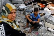 Seorang anak duduk di atas puing-puing sebuah bangunan hancur akibat serangan udara Israel di Jalur Gaza (12/5/2023). Kantor Hak Asasi Manusia Perserikatan Bangsa-Bangsa (PBB) menyatakan kekhawatiran atas serangan Israel di Gaza yang menewaskan sedikitnya 25 warga Palestina, termasuk perempuan dan anak-anak. ANTARA FOTO/REUTERS/Mohammed Salem/tom.