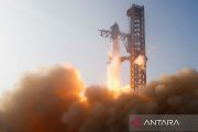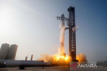 SpaceX's Starship lepas landas dari landasan peluncuran Boca Chica dalam misi uji orbit, dalam foto yang diambil dari kamera jarak jauh yang hancur di landasan peluncuran, yang dikembalikan pada 22 Mei ke Reuters dari SpaceX dekat Brownsville, Texas, AS (20/4/2023). ANTARA FOTO/REUTERS/Joe Skipper/aww.