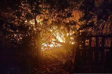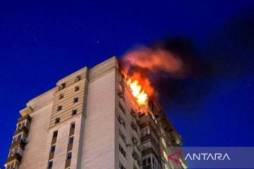 Sebuah bangunan tempat tinggal terbakar setelah serangan besar-besaran pesawat tak berawak Rusia, di Kyiv, Ukraina, Selasa (30/5/2023). ANTARA FOTO/ Kyiv City Military Administration/Handout via REUTERS/aww.