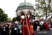 Warga menonton band Mehter dari SMA Uskudar Hakki Demir Imam Hatip saat tampil untuk memperingati 570 tahun penaklukan kota oleh Turki Ottoman, di Istanbul, Turki (29/5/2023). ANTARA FOTO/REUTERS/Murad Sezer/aww.