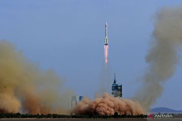 Pesawat antariksa berawak Shenzhou-16, yang berada di atas roket pengangkut Long March-2F, diluncurkan dari Pusat Peluncuran Satelit Jiuquan di China barat laut, Selasa (30/5/2023). China mengirim tiga astronaut ke stasiun luar angkasanya,Tiangong, untuk menjalani misi selama lima bulan. ANTARA FOTO/China Daily via REUTERS/foc.