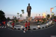 Pelari beradu kecepatan dalam lomba lari Bung Karno Run 2023 di Blitar, Jawa Timur, Minggu (4/5/2023). Lomba yang diikuti sekitar 900 peserta dari dalam dan luar negeri itu untuk menyemarakkan peringatan Bulan Bung Karno yang diperingati setiap bulan Juni dan sebagai ajang promosi pariwisata daerah. ANTARA FOTO/Irfan Anshori/hp.