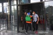 Terdakwa kasus suap pengurusan perkara di Mahkamah Agung (MA) Heryanto Tanaka (tengah) menutupi wajahnya usai mengikuti sidang secara virtual di Gedung Merah Putih KPK, Jakarta, Rabu (7/6/2023). Debitur Koperasi Simpan Pinjam Intidana tersebut menjalani sidang lanjutan dengan agenda pemeriksaan saksi dalam kasus dugaan menyuap Hakim Mahkamah Agung (MA) Sudrajad Dimyati terkait pengurusan perkara di Mahkamah Agung (MA). ANTARA FOTO/Indrianto Eko Suwarso/aww.