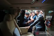 Menteri Pertanian Syahrul Yasin Limpo (kiri) memasuki mobil saat akan meninggalkan Gedung ACLC KPK, Jakarta, Senin (19/6/2023). Syahrul Yasin Limpo memenuhi panggilan KPK guna memberi keterangan terkait penyelidikan kasus dugaan korupsi di Kementerian Pertanian. ANTARA FOTO/Reno Esnir/aww.