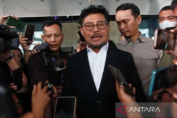 Menteri Pertanian Syahrul Yasin Limpo (tengah) menjawab pertanyaan wartawan saat akan meninggalkan Gedung ACLC KPK, Jakarta, Senin (19/6/2023). Syahrul Yasin Limpo memenuhi panggilan KPK guna memberi keterangan terkait penyelidikan kasus dugaan korupsi di Kementerian Pertanian. ANTARA FOTO/Reno Esnir/aww.