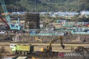 Sejumlah pekerja menyelesaikan proyek pembangunan smelter PT Amman Mineral Nusa Tenggara (AMNT) di Dusun Otak Keris, Maluk, Sumbawa Barat, NTB, Selasa (20/6/2023). Progres total pencapaian pembangunan smelter AMNT hingga Januari 2023 sebesar 51,63 persen dan diperkirakan commissioning smelter akan dilakukan pada Juli 2024 dan beroperasi dengan kapasitas 60 persen di Desember 2024. ANTARA FOTO/Ahmad Subaidi/rwa.