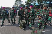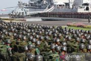 Personel TNI Angkatan Laut mengikuti apel gelar pasukan Latihan Armada Jaya XLI di Koarmada II, Surabaya, Jawa Timur, Selasa (27/6/2023). Kegiatan yang melibatkan 1.916 personel tahap Geladi Posko dan 5.900 personel tahap Manuver Lapangan itu untuk meningkatkan kemampuan unsur pimpinan-staf komando gabungan TNI dan komando tugas gabungan dalam melaksanakan Proses Pengambilan Keputusan Militer (PPKM), meningkatkan profesionalisme prajurit TNI AL, kesiapan operasional dan keterpaduan komponen SSAT serta menguji doktrin operasi gabungan TNI. ANTARA FOTO/Didik Suhartono/tom.