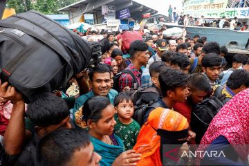 Ribuan orang bergegas menaiki kapal feri yang penuh sesak di Terminal Feri Sadarghat saat mereka mudik untuk merayakan Idul Adha bersama keluarga, di Dhaka, Bangladesh, Selasa (27/6/2023). ANTARA FOTO/Reuters/Mohammad Ponir Hossain/nym.
