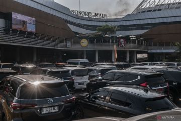 Kendaraan roda empat antre menunggu kapal bersandar di Pelabuhan Eksekutif Merak, Kota Cilegon, Banten, Rabu (28/6/2023). PT ASDP Indonesia Ferry (Persero) memprediksi peningkatan angkutan penumpang dan kendaraan naik sebesar hingga 10 persen selama cuti bersama dan Hari Raya Idul Adha 1444 H dibandingkan dengan penyeberang pada hari biasanya. ANTARA FOTO/Muhammad Bagus Khoirunas/hp.