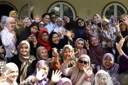 Menteri BUMN Erick Thohir (tengah, atas) foto bersama Warga Negara Indonesia usai melaksanakan Shalat Idul Adha di Indian Recreation Club, Hong Kong, Kamis (29/6/2023). KJRI Hong Kong menggelar Shalat Idul Adha 1444 H bersama warga dan diaspora Indonesia di Hong Kong. ANTARA FOTO/Puspa Perwitasari/aww.