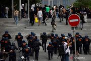 Polisi anti huru hara bereaksi atas warga yang melakukan aksi protes atas terbunuhnya Nahel (17 tahun) saat pemeriksaan lalu lintas oleh polisi di Nanterre, Paris, Prancis, Kamis (29/6/2023). ANTARA FOTO/REUTERS/Sarah Meyssonnier/foc.