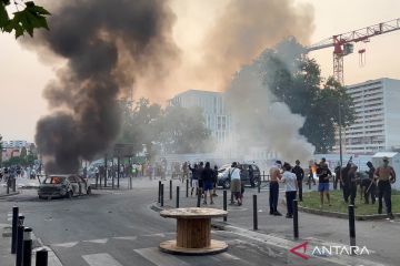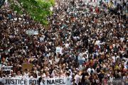Warga melakukan aksi protes atas terbunuhnya Nahel (17 tahun) saat pemeriksaan lalu lintas oleh polisi di Nanterre, Paris, Prancis, Kamis (29/6/2023). ANTARA FOTO/REUTERS/Sarah Meyssonnier/foc.
