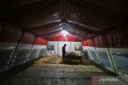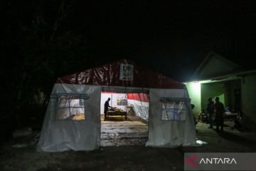 Relawan membangun tenda darurat pascagempa magnitudo 6,4 di Pacarejo, Gunungkidul, DI Yogyakarta, Sabtu (1/7/2023). Warga memilih tidur di tenda darurat untuk sementara karena rumah yang rusak serta takut terjadi gempa susulan. ANTARA FOTO/Hendra Nurdiyansyah/aww.