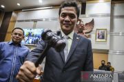 Anggota DPR Fraksi Gerindra Habiburokhman memegang palu sidang usai dilantik menjadi Wakil Ketua Komisi III DPR di Kompleks Parlemen, Senayan, Jakarta, Selasa (4/7/2023). Fraksi Gerindra DPR menunjuk Habiburokhman menjadi Wakil Ketua Komisi III DPR menggantikan Desmond J Mahesa, yang meninggal dunia beberapa waktu lalu. ANTARA FOTO/Rivan Awal Lingga/Spt.