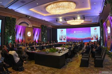 Suasana Pertemuan Komisi Kawasan Bebas Senjata Nuklir Asia Tenggara (SEANWFZ) berlangsung di Jakarta, Selasa (11/7/2023). Pertemuan tersebut di antaranya membahas pemajuan penandatanganan Protokol Southeast Asia Nuclear Weapon-Free Zone. ANTARA FOTO/Aditya Pradana Putra/hp.