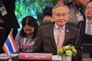 Menlu Thailand Don Pramudwinai mengikuti Pertemuan Komisi Kawasan Bebas Senjata Nuklir Asia Tenggara (SEANWFZ) di Jakarta, Selasa (11/7/2023). Pertemuan tersebut di antaranya membahas pemajuan penandatanganan Protokol Southeast Asia Nuclear Weapon-Free Zone. ANTARA FOTO/Aditya Pradana Putra/hp.