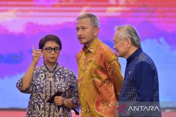 Menteri Luar Negeri Retno Marsudi (kiri) berbincang dengan Menlu Singapura Vivian Balakrishnan (tengah) dan Menlu Thailand Don Pramudwinai (kanan) usai penandatanganan Instrumen Aksesi Traktat Persahabatan dan Kerjasama Asia Tenggara (TAC) di Jakarta, Rabu (12/7/2023). Penandatanganan tersebut menandai pengakuan Arab Saudi pada prinsip-prinsip ASEAN yang mempromosikan perdamaian, persahabatan, dan kerja sama di Asia Tenggara. ANTARA FOTO/M Risyal Hidayat/tom.