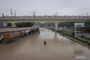 Warga melintasi jalan yang terendam banjir akibat luapan sungai Yamuna saat musim hujan di New Delhi, India, Kamis (13/7/2023). ANTARA FOTO/REUTERS/Adnan Abidi/foc.