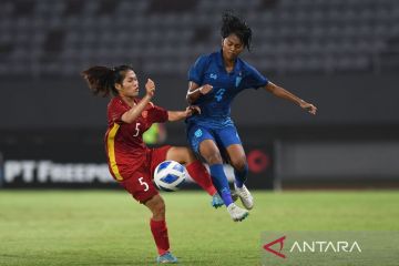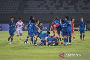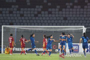 Sejumlah pesepak bola Timnas putri Thailand U-19 berselebrasi setelah berhasil membobol gawang Timnas putri Vietnam pada pertandingan Final AFF U-19 Women Championship 2023 di Stadion Gelora Sriwijaya Jakabaring (GSJ), Jakabaring Sport City (JSC) Palembang, Sumatera Selatan, Sabtu (15/7/2023). Thailand menjuarai AFF U-19 Women Championship 2023 setelah mengalahkan Vietnam dengan skor 2-1. ANTARA FOTO/Nova Wahyudi/tom.