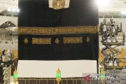 Kain penutup Kabah atau kiswah yang lama dan baru masih tertempel di Masjidil Haram, Mekah, Arab Saudi, Rabu (19/7/2023). Pemerintah Arab Saudi mengganti kiswah setiap 1 Muharam atau masuk tahun baru Islam. ANTARA FOTO/Wahyu Putro A/aww.