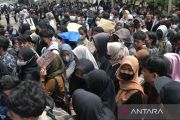 Pencari kerja antre untuk memasuki area bursa kerja di Pusat Perbelanjaan Bekasi, Jawa Barat, Selasa (25/7/2023). Bursa kerja yang diikuti 30 perusahaan se Jabodetabek itu berlangsung pada 25 - 27 Juli 2023. ANTARA FOTO/Fakhri Hermansyah/Spt.
