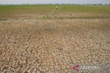Warga melihat kondisi sawahnya yang mengering di Balongan, Indramayu, Jawa Barat, Selasa (25/7/2023). Badan Meteorologi, Klimatologi dan Geofisika (BMKG) memprakirakan puncak kemarau imbas fenomena El nino terjadi pada Agustus hingga awal September mendatang. ANTARA FOTO/Dedhez Anggara/aww.